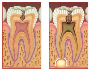 As causas mais comuns para a infecção ou morte da polpa dentária são: